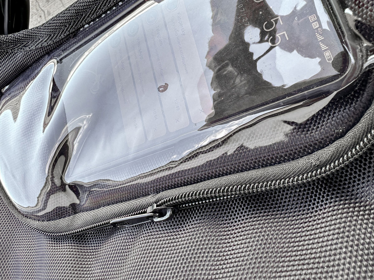 Также у неё есть прозрачный карман для навигатора или смартфона. Туда можно добавить элемент для подогрева мобильного устройства при низких температурах.